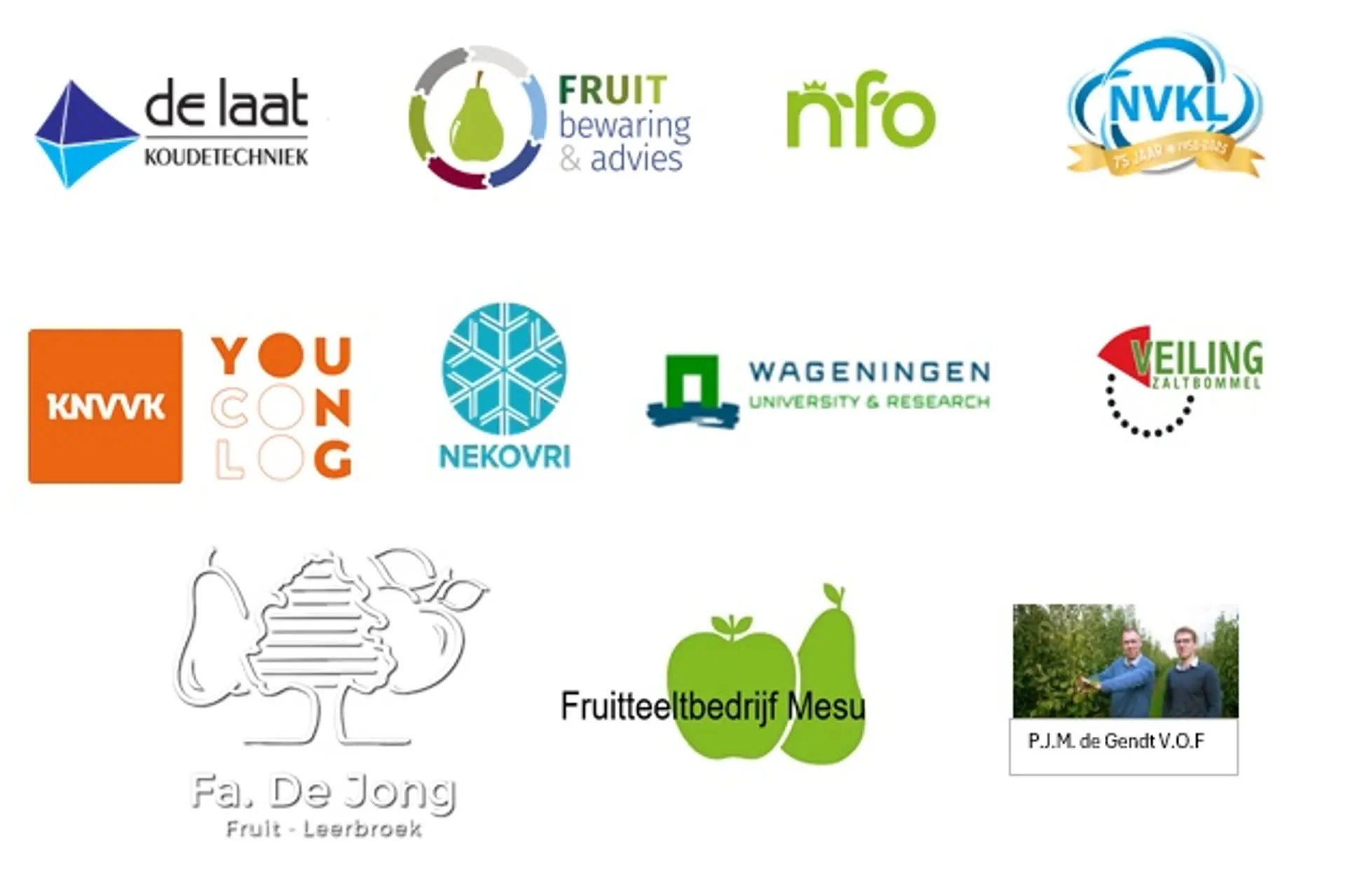 Our partners for this project are: De Laat Koudetechniek, Fruitbewaring en advies, Veiling Zaltbommel, KNVvK, NFO, NVKL, NEKOVRI, FA de Jong, Mesu Fruitteelt en P.J.M. de Gendt V.O.F.