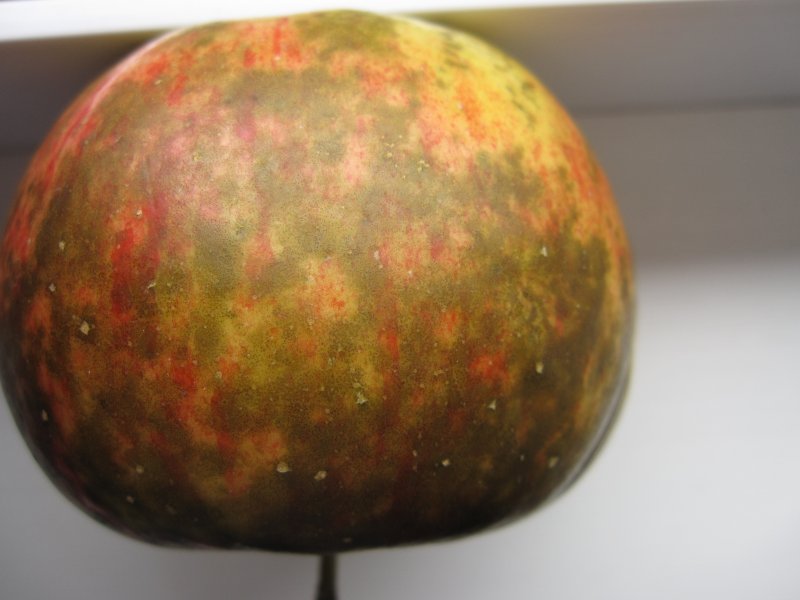 Rainspot disease (sooty blotch) can be found mostly on organically grown apples, such as the variety Topaz. It forms irregular, olive-green discolorations on the skin. This disease does not cause rot in the fruits. The apples are safe to eat. The infection occurs in the orchard, among others things by spores that splash onto fruits during rainfall.