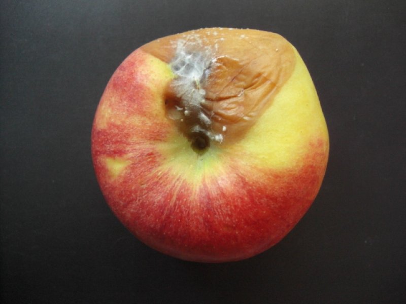 Stem-end rot can be caused by various fungal pathogens. The rot starts from the stem. Apples which are picked without stem can easily develop rots in the stem cavity. Obviously, careful harvesting is important. Cracks in the stem area can also lead to rots.