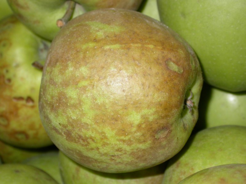 Superficial scald, also called common scald, is a disorder that is visible on the skin. It looks like a brown stain with no clear edges and usually develops on the green part of the fruit. The flesh under the skin is not affected. This disorder can get worse during storage and especially during shelf-life. Therefore, it may appear unexpectedly after a few days on the shelf. However, the cause lies earlier in the supply chain. Some varieties are more susceptible, such as Granny Smith and Red Delicious. Low temperature and low oxygen during storage and application of 1-MCP can reduce the risk.