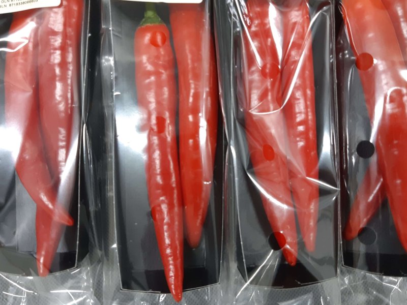 Macro-perforations are located in such way that they are not blocked when packages are stappled during transport or display