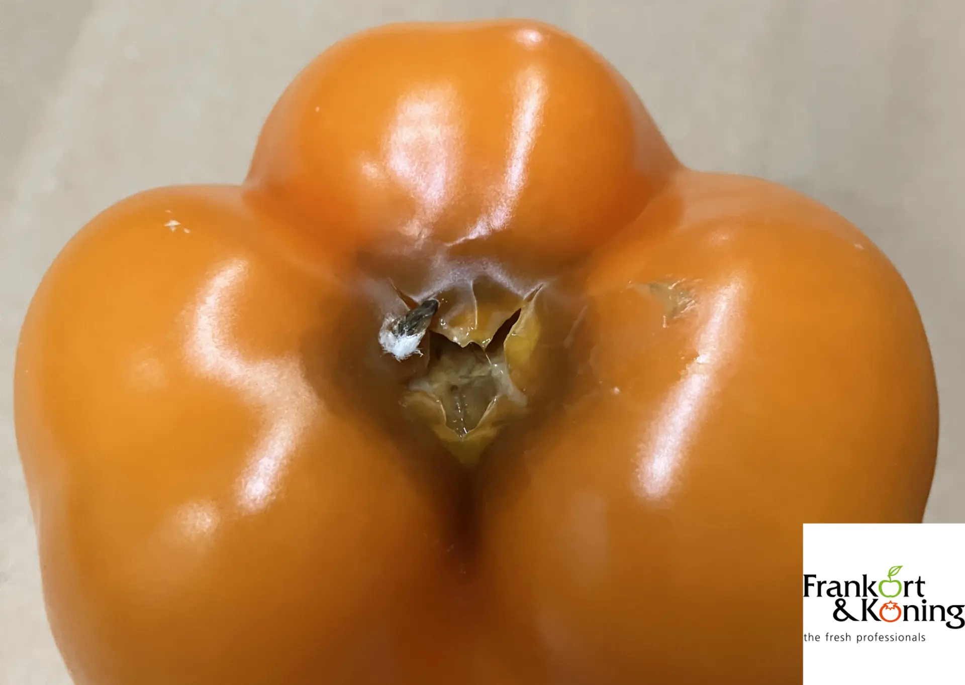 Nose rot is identifiable by brown spots at the blossom end or tip of the pepper. These spots may be slightly sunken and often feel soft. The defect closely resembles the early stages of sunscald.
