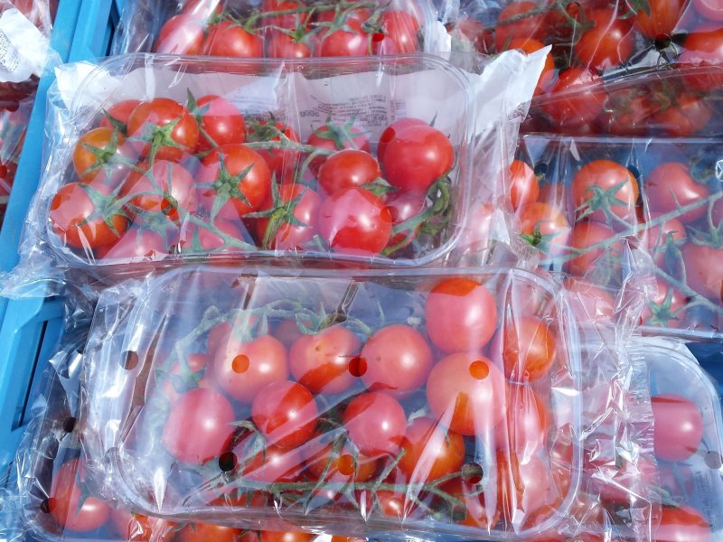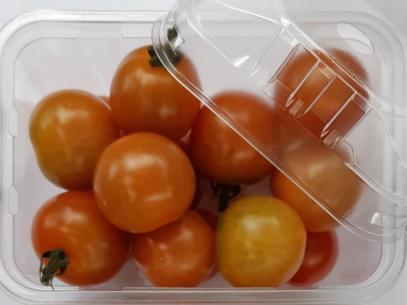 Cherry tomatoes packed in a punnet with clip-on lid. Photo by WUR