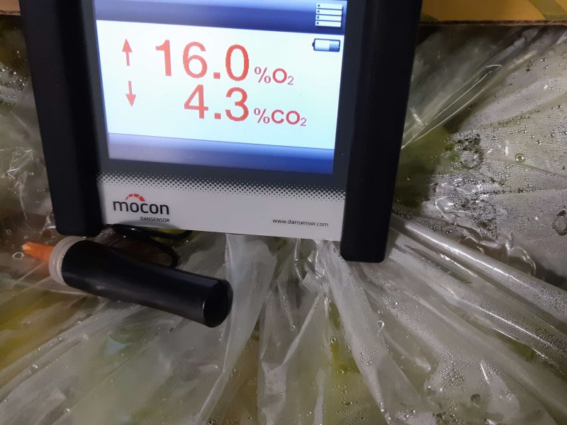 The temperature affects the respiration of the product. At a higher temperature, it is higher, meaning the product consumes more oxygen (O2) and produces more carbon dioxide (CO2). In Modified Atmosphere (MA) packaging, the concentration of O2 then decreases and CO2 increases and unwanted fermentation can occur. If the temperature is too low, the opposite applies, which reduces the beneficial effect of MA on quality. If the temperature deviates much from the desired value, product damage can occur due to undesirable O2 and CO2 concentrations, such as taste deviations.