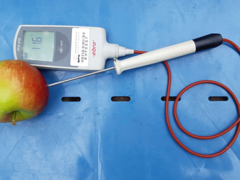 The product temperature is often different from the air temperature in the cold store. This is because product comes in at a different temperature (warmer or colder) and produces respiratory heat. In addition, there is temperature variation between different positions within a cold store, pallet, and packaging. Therefore, the product temperature should be checked regularly. By timely intervention, temperature-related disorders can then be prevented.