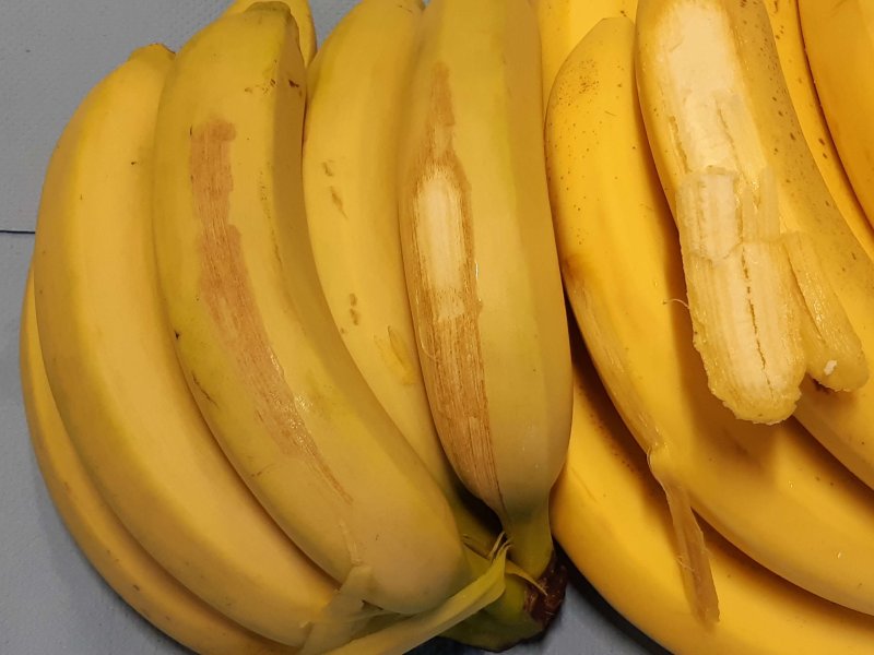 When exposed to too low temperatures, various forms of product damage can occur. Green bananas can show discoloration under the skin. At a more advanced yellow stage of ripeness, it may be visible from the outside when bananas take on a dull grey appearance.